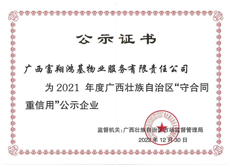 • 2020年度廣西“守合同重信用“公示企業